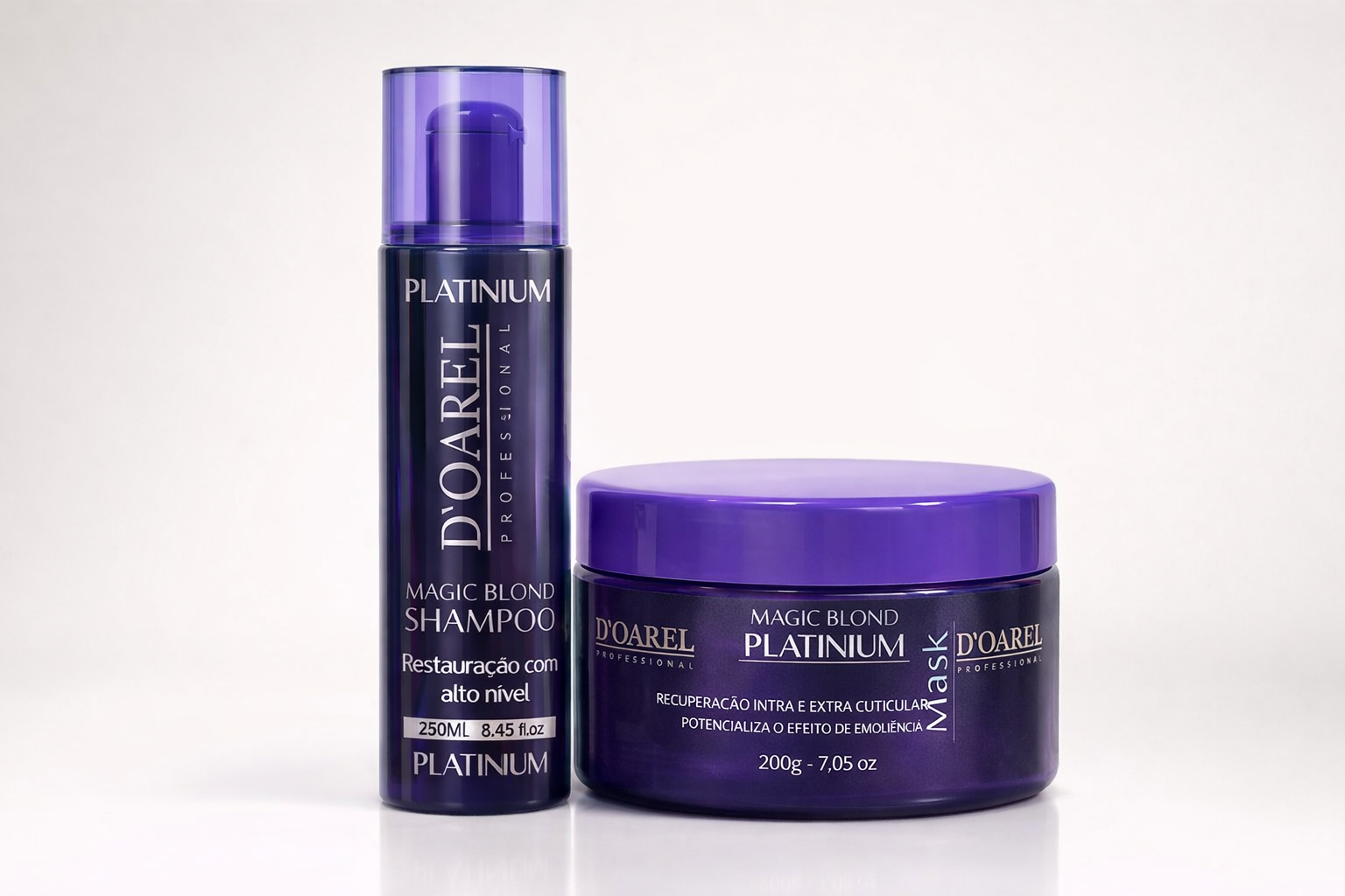 A linha Magic Blonde Platinium, foi desenvolvida especialmente para cabelos loiros, com mechas, grisalhos ou brancos. Essencial para loiros naturais ou coloridos para manter os tons frios. Acentua a cor dando especial destaque ao loiro e prateado, suavizando as mechas, promovendo hidratação e brilho, acabando com o tom amarelado indesejado.
