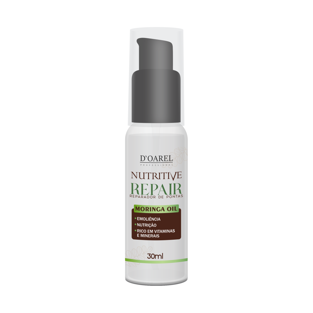 O reparador de pontas NUTRITIVE REPAIR D’OAREL PROFESSIONAL é enriquecido com Moringa Oil, um óleo com alta concentração de minerais, vitaminas e antioxidantes, capazes de retardar o envelhecimento dos fios, hidratar as fibras capilares, combater a caspa e a queda, promover a recuperação dos fios danificados e ativar a circulação sanguínea do couro cabeludo, permitindo que os folículos pilosos cresçam mais fortes e saudáveis, evitando assim as pontas duplas e o frizz, oferecendo melhor penteabilidade a seco, aumentando o brilho e a emoliência, sem deixar o sensorial pesado .